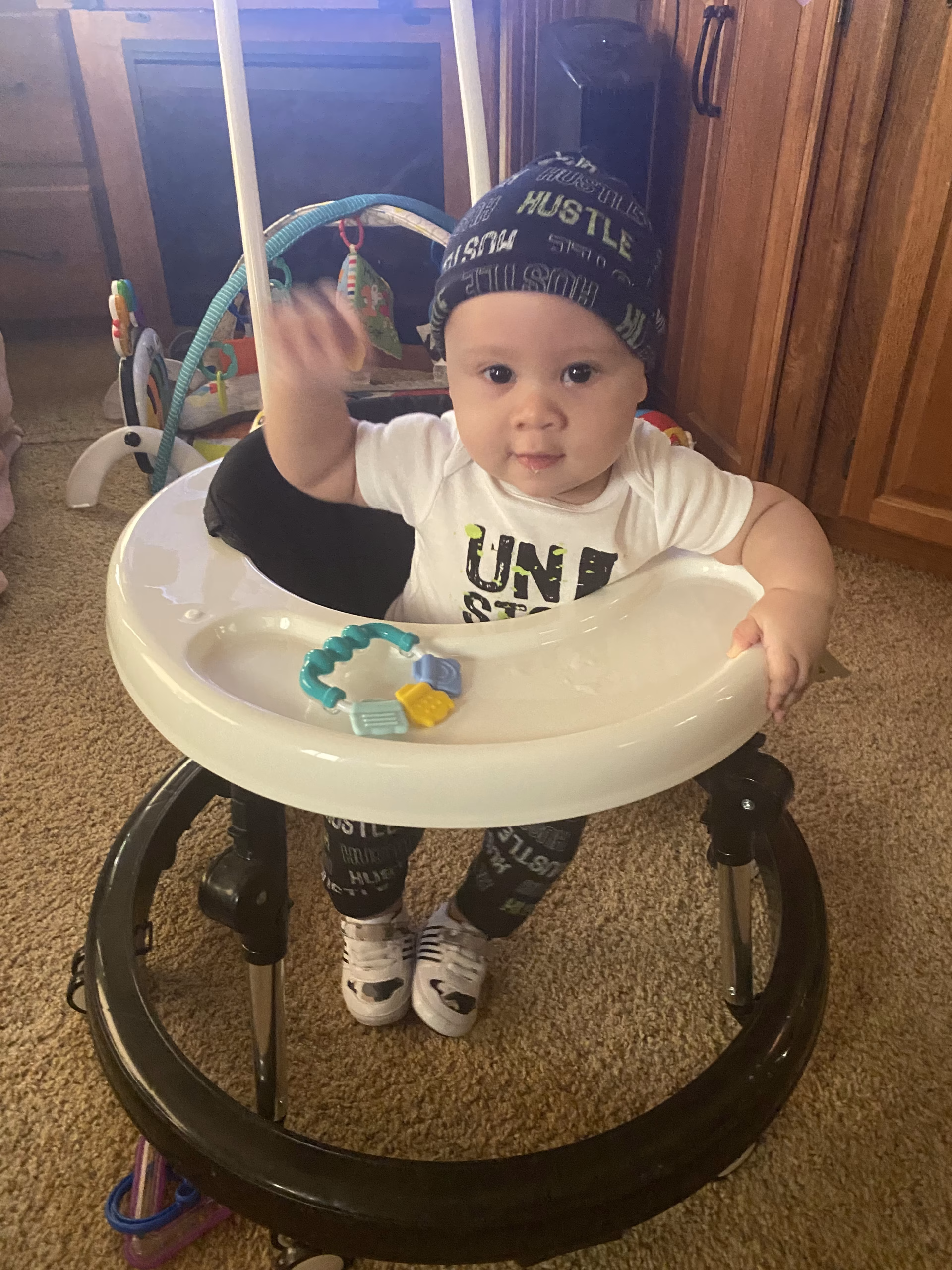 My name is Bryson. I’m 6 months old. I like to play and laugh. I have a lot of energy and I love exploring and learning new things. I roll around, sit up and enjoy my walker. My hobbies include tummy time picking up and playing with expensive things