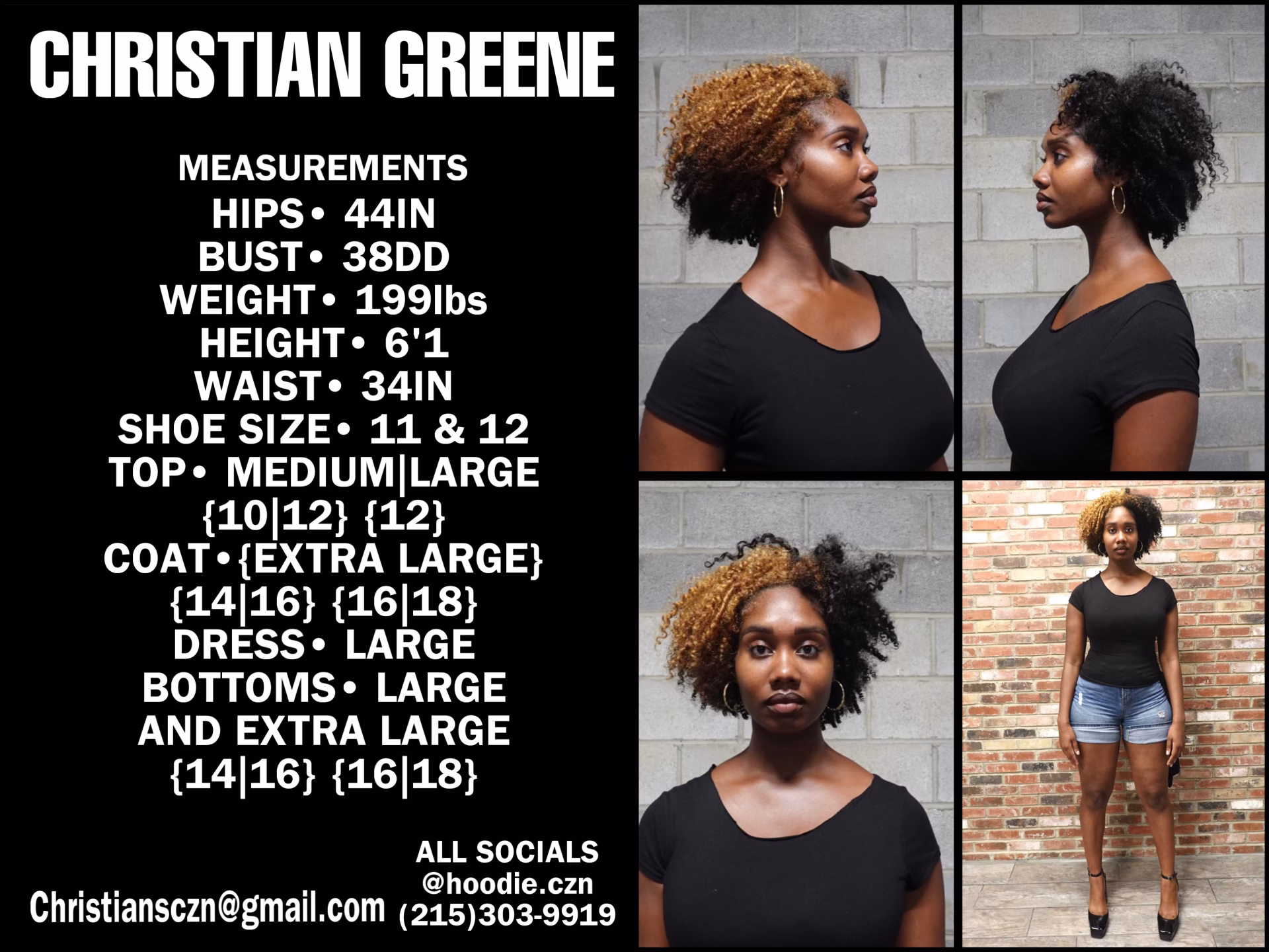 With a focus on Commercials, Fashion Show, Modeling, Social Media Content, Christian Greene has been involved in projects that align with these areas, gaining hands-on experience. This background supports a well-rounded approach to new challenges and tasks, making Christian Greene adaptable across different project settings.