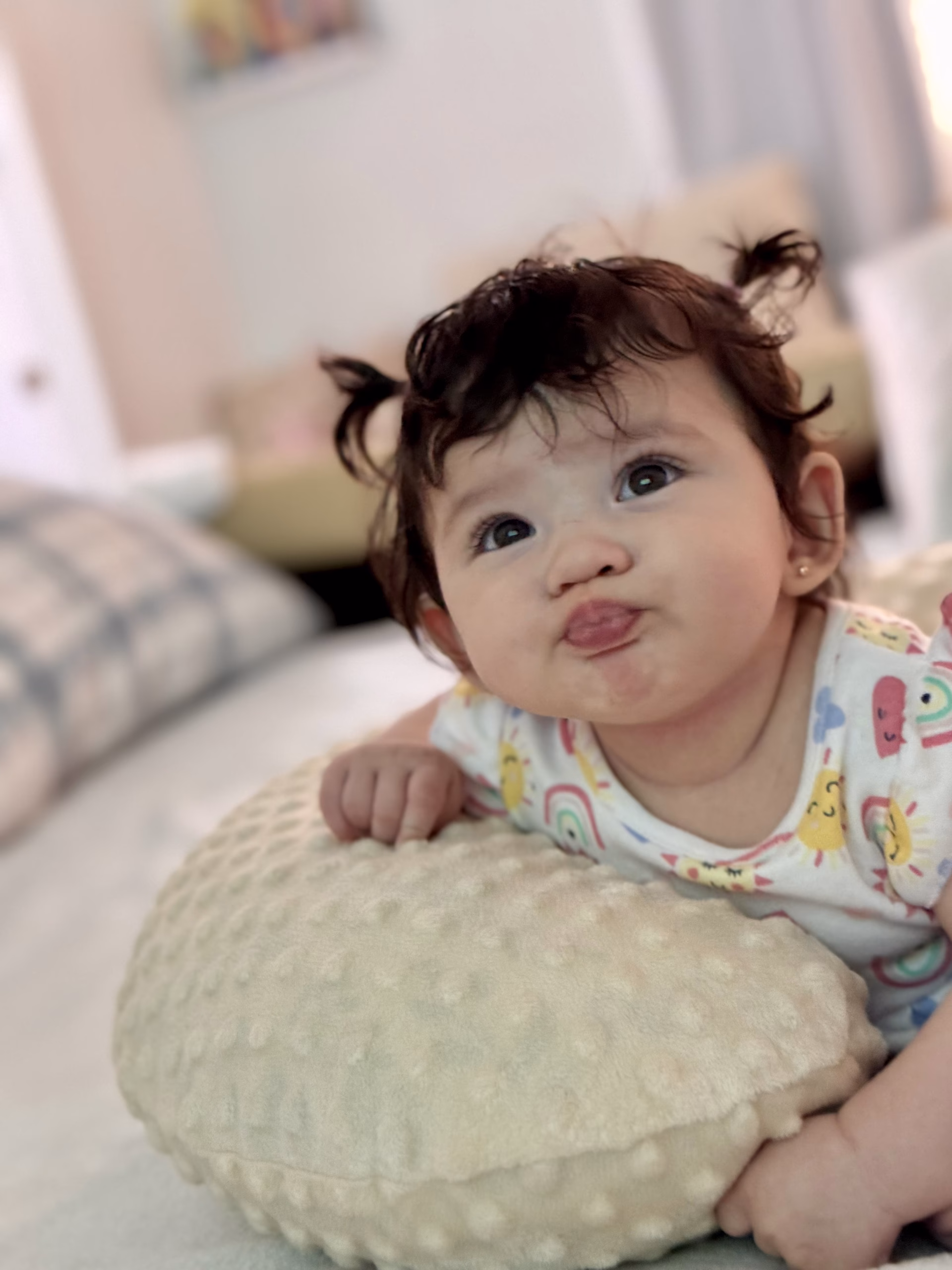 Emma is a happy and curious baby with a warm smile that lights up any room. She loves people, is very expressive, and always grabs attention with her adorable expressions.