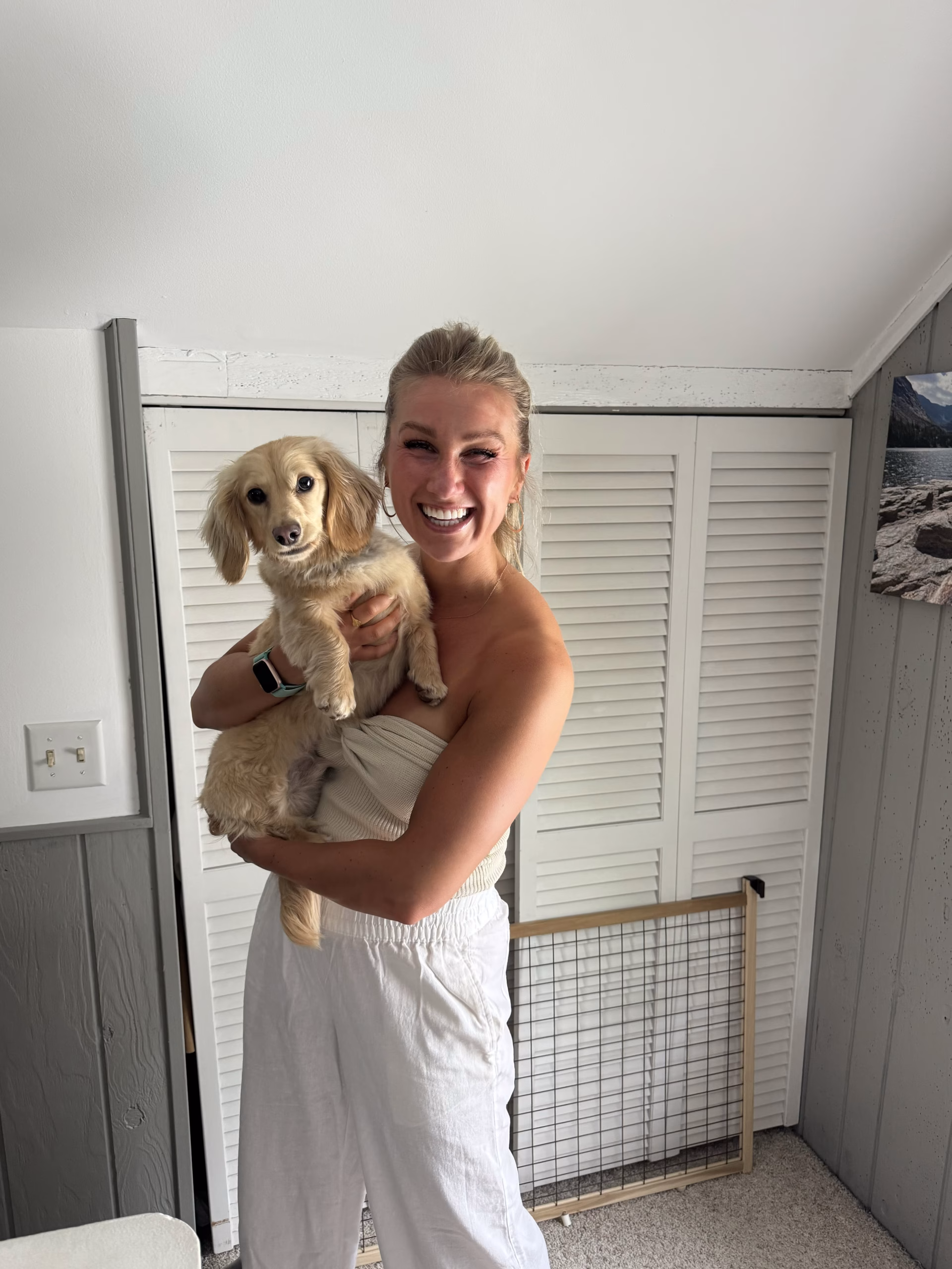 I love to run, lift weights, take barre/fitness classes, and be active. Fitness is a hobby for me as well as cooking and spending time with my husband and puppy.