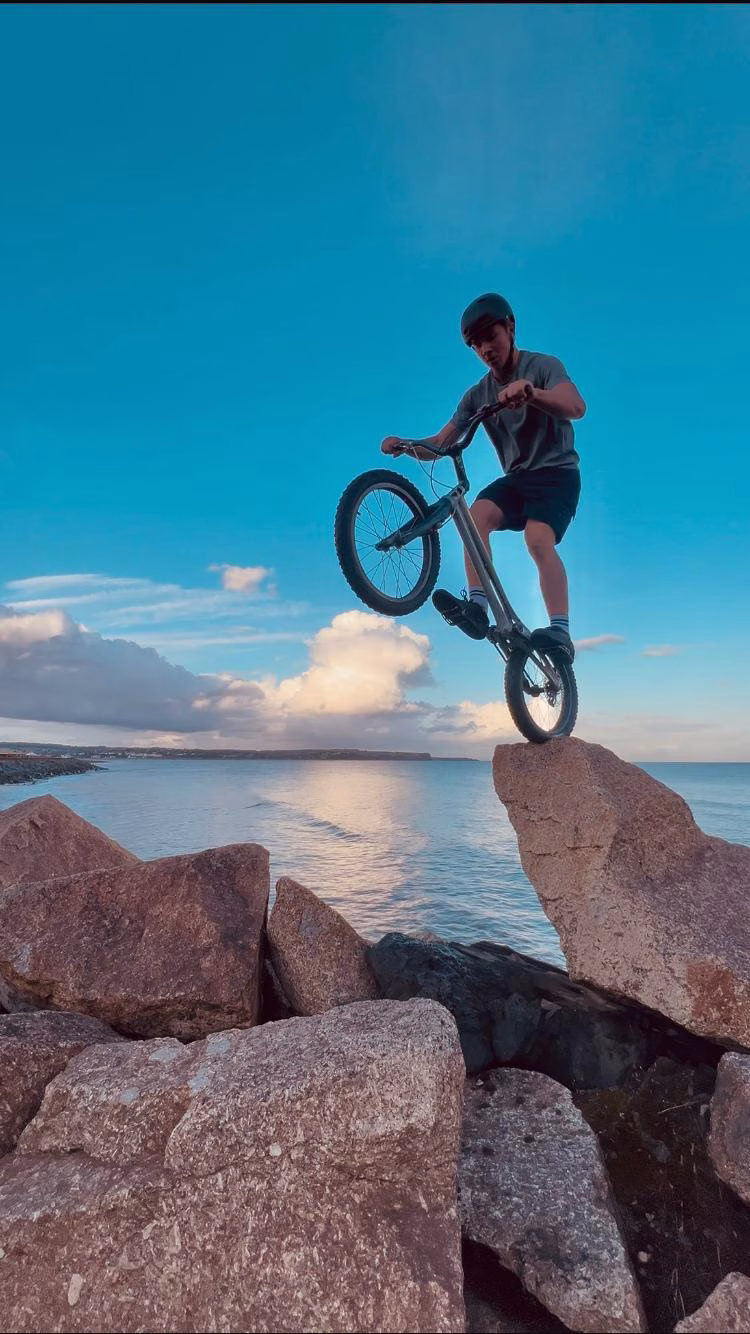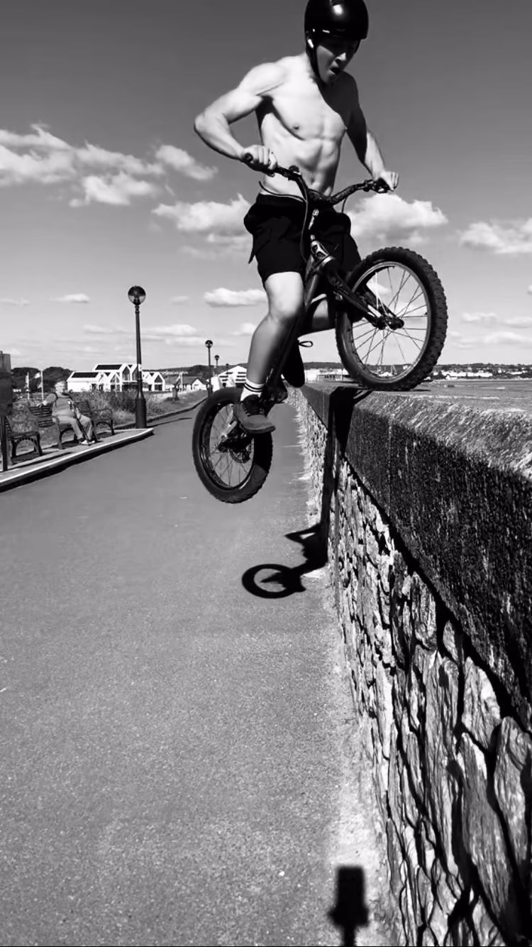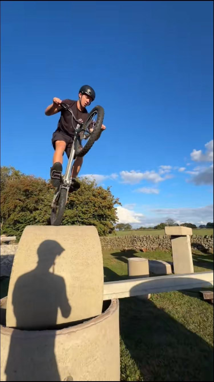 Hi, I'm James a 17 year old bike trials athlete from Devon, UK. I specialize in bike trials and bike stunts but can also do acting and am currently working in the outdoor theatre show CODE for theatre company Justice In Motion. This year I placed 2nd in the national championships and am soon going to compete in the UCI world championships held in Riyadh, Saudi Arabia.