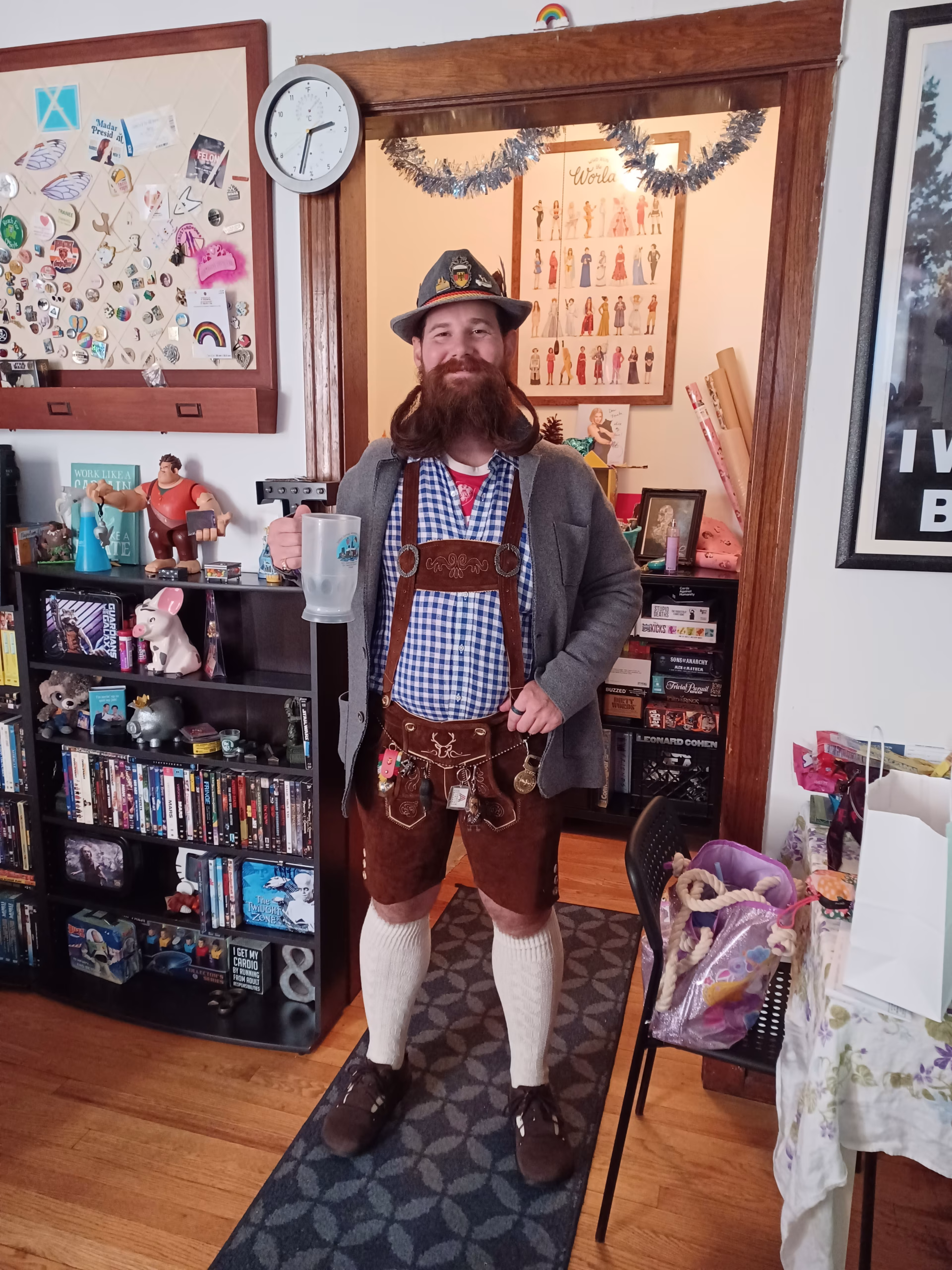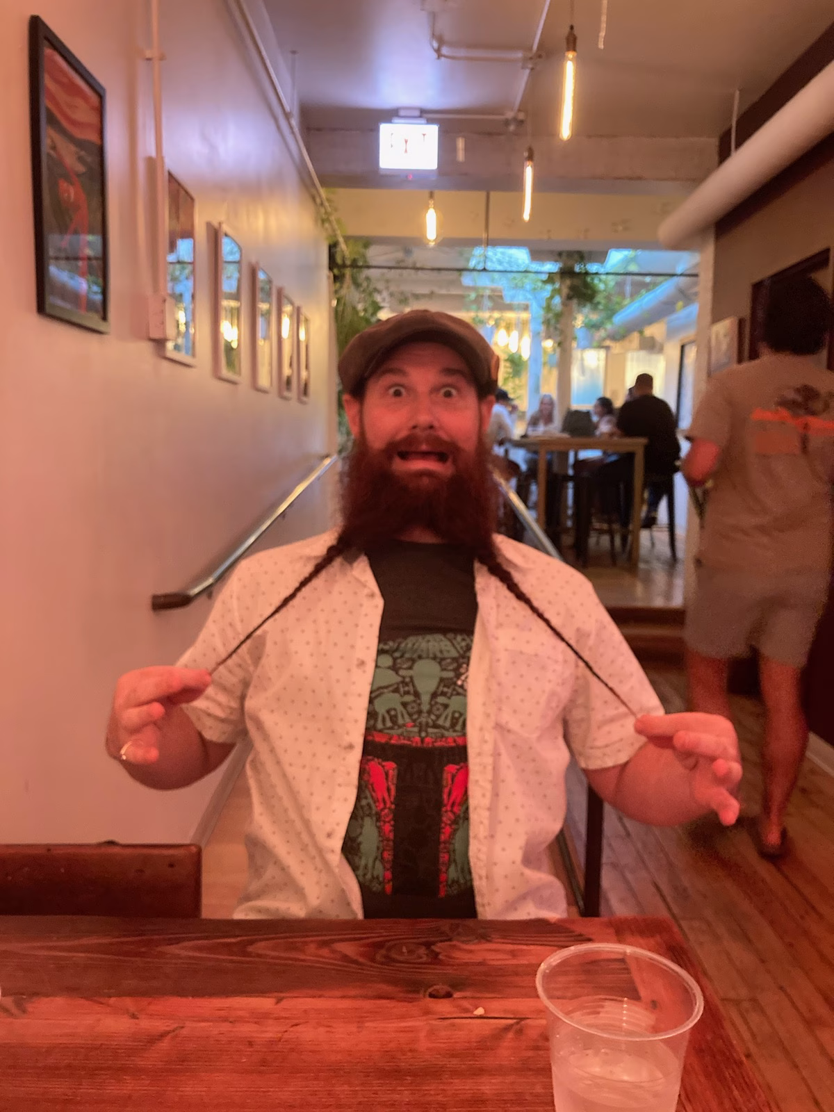 Long hair and long (down to my belly button) beard. Not willing to cut either.