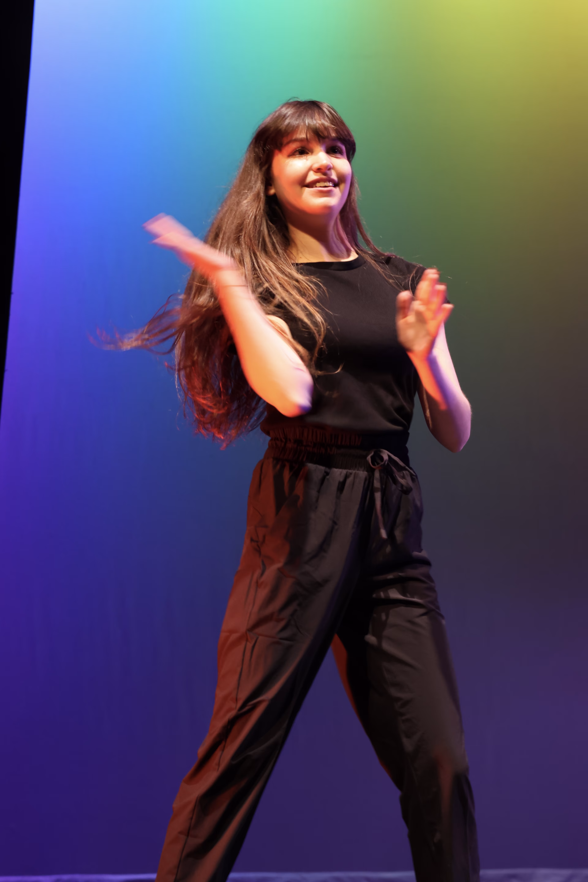 She took dance classes from age three to fourteen in ballet, jazz, acrobatics, and lyrical. In college, she has taken dance classes in ballet, musical theatre styles, jazz, and tap. She is also a member of her college's dance team as a dancer and choreographer, and participates as a dancer in her college's dance concert every year with contemporary and modern styles.