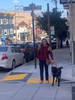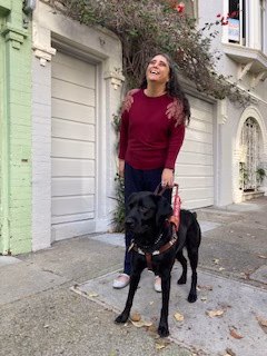 Hi my name is Marvelena Quesada and I live in SF and work full time as an I am hospital interpreter. I am visually impaired, and I have a beautiful assistance dog. I am a very passionate person, I love walks and fostering dogs. Allison (My dog) Guide dog seeks work in pet food commercial. We have a high respect for your product and want to make the correlation between the amazing work she preforms and how its relative to the nutrition received from your food.