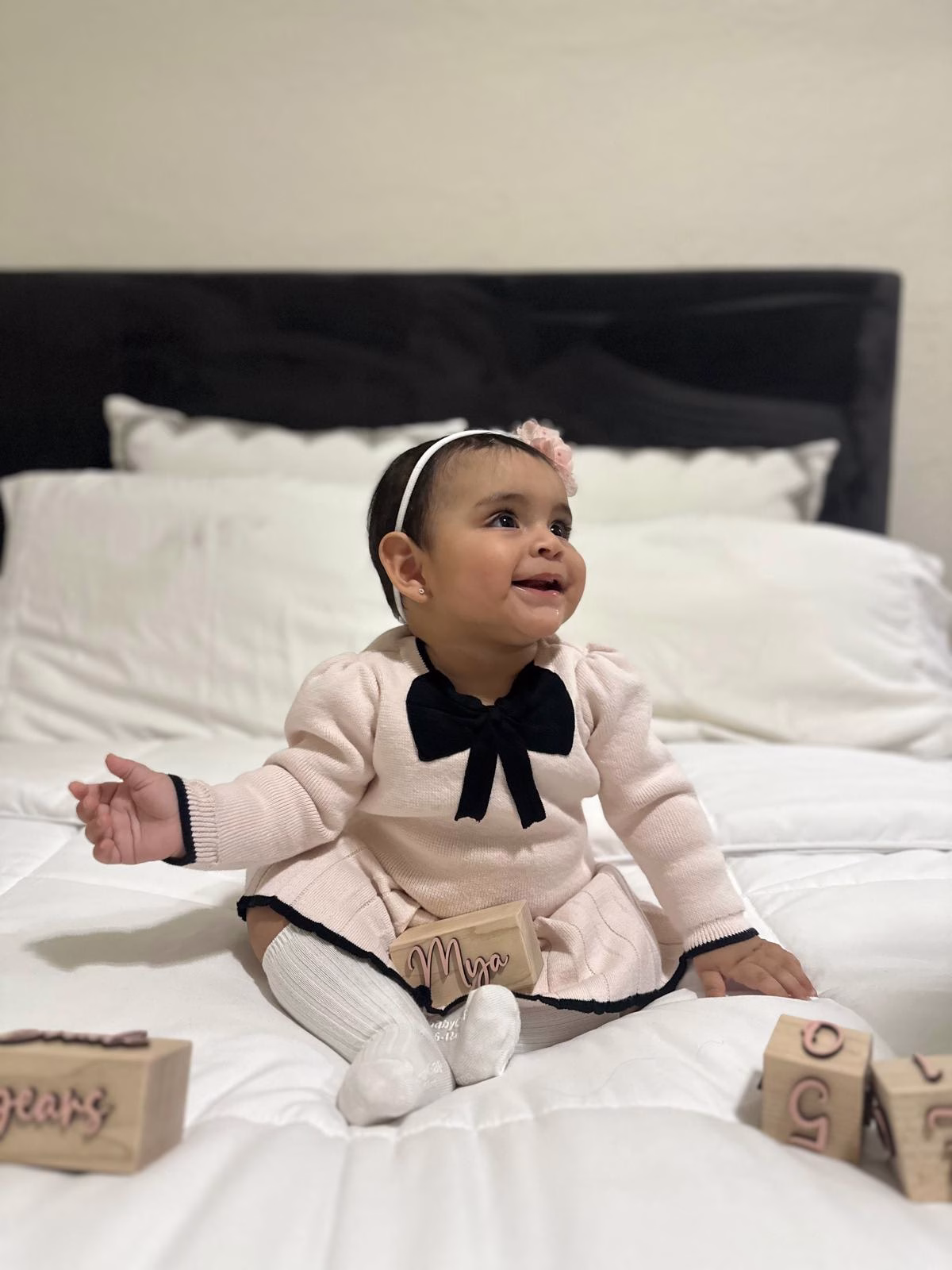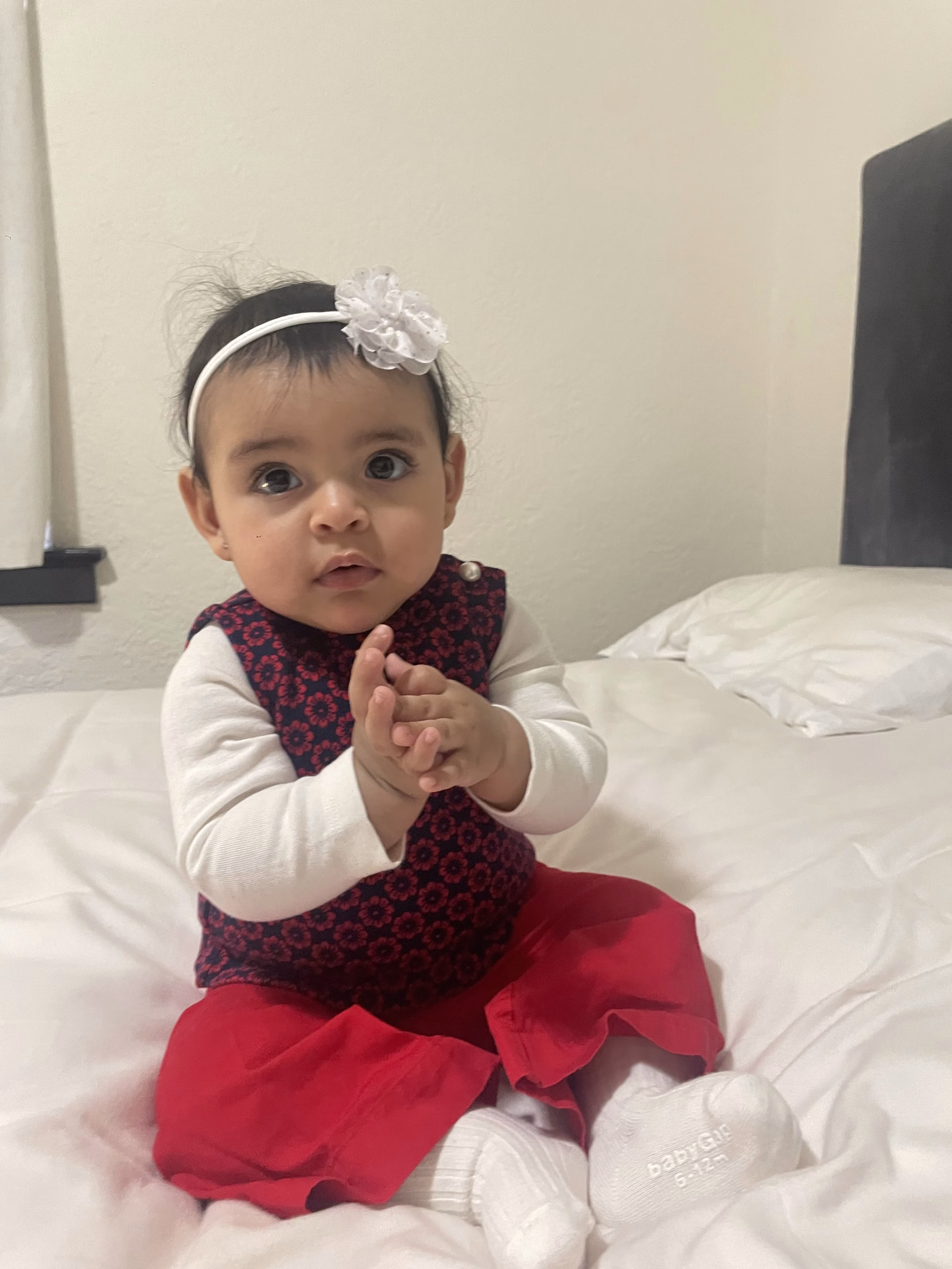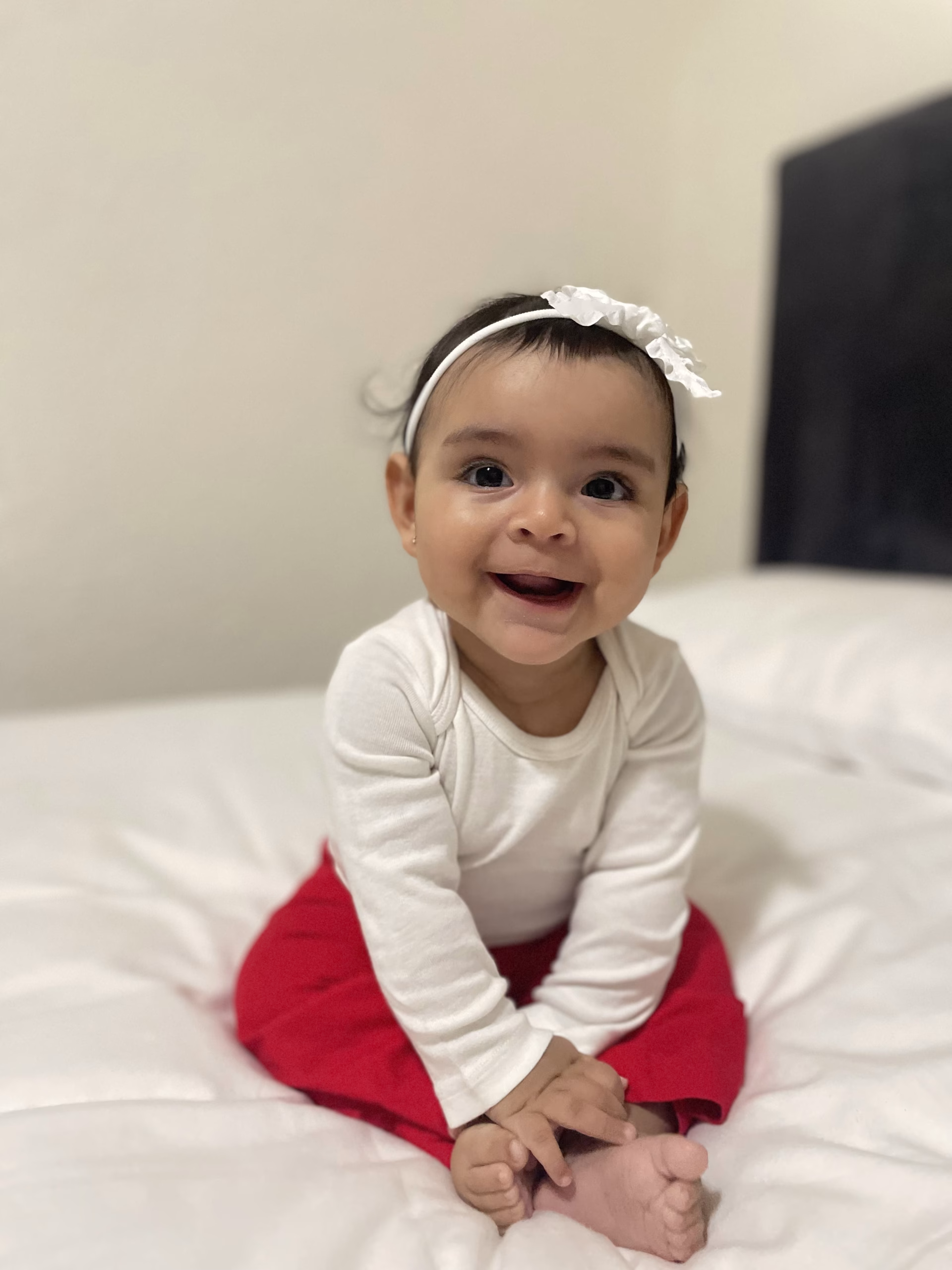 8 month old sassy baby with big eyes and a beautiful smile.