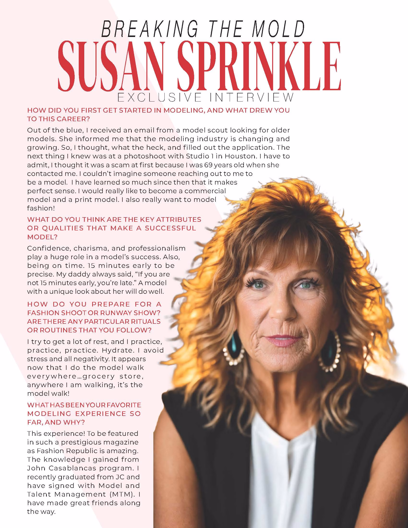 As a retired medical professional with decades of life experience shaping my character and style, I bring a unique blend of elegance, grace, and confidence to the table. Modeling, for me, is not just about striking poses; it's about embracing the beauty of age, celebrating diversity, and proving that style knows no bounds. Acting to me is not just about landing a role, it is about becoming the character whether it be commercial or film and leaving an unforgettable impression on the audience. I am committed to representing authenticity, resilience, and the timeless allure of mature character and femininity, along with humor and professionalism.